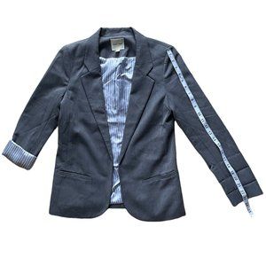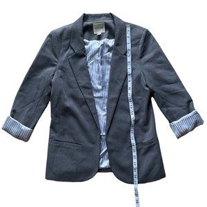 This blazer is fully lined with a pinstripe material that looks great when you roll up the sleeves. The sleeves can be unrolled. The fit is somewhat oversized if you are more on the petite size. You can dress it up with a work pant or even look super chic with jeans and a heel!