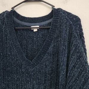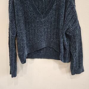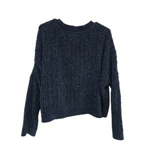Silence + Noise Pullover Chenille Knit Cropped Sweater Dark Green Size Medium