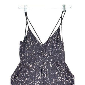 Silence + Noise Romper Short Womens Small Black Tan Abstract Plunge Neckline