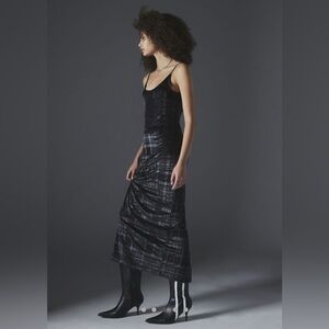 Slip dress from Silence + Noise in plush velvet. Maxi length silhouette cut in a slim-fit with a low-cut back and a slit at the back hem. Finished with an allover plaid print. Find it only at Urban Outfitters.