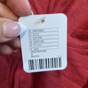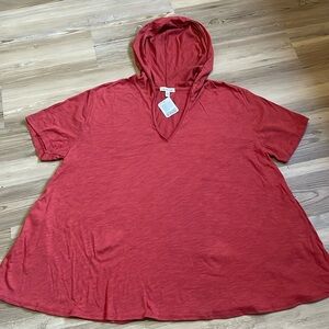 Silence + Noise Short Sleeve V-Neck Hooded Top Nantucket Red Size S NEW Pockets!