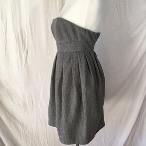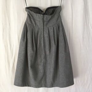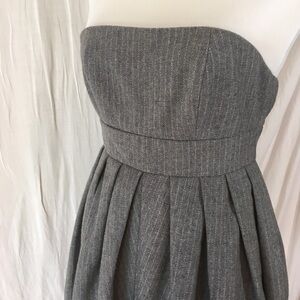 Silence + Noise poly wool blend grey and white pinstripe mini strapless dress, sticky strip around bust for staying put