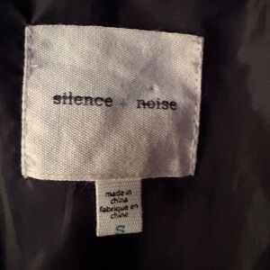The Silence + Noise Studded Embroidered Black Faux Leather Full Zip Jacket is a stylish and edgy women's motorcycle jacket perfect for the winter, fall, and spring seasons. Made from faux leather with a polyester lining, this short-length jacket features long sleeves and a full zip closure as well as zippered pockets and cuffs. The studded and embroidered accents add a unique touch to the black jacket, making it ideal for casual or travel occasions. With a regular fit and size small, this jacket from the brand Silence + Noise is a fashionable and practical addition to any woman's wardrobe.