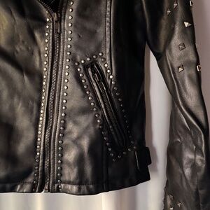 Silence + Noise Studded Embroidered Black Faux Leather Full Zip Jacket Women S