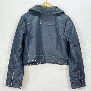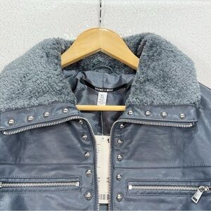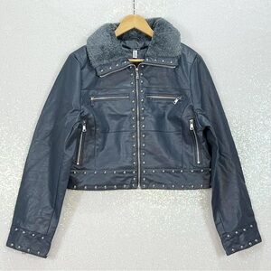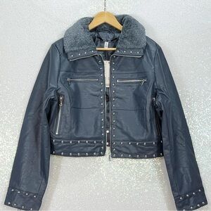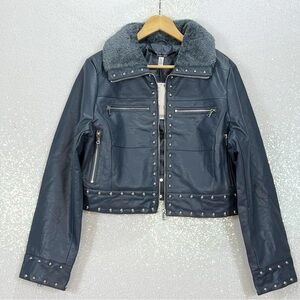 Silence + Noise Jacket in a sleek faux leather. Designed in a slim & cropped fit with a foldover collar with Sherpa lining, double breasted zip pockets and topped with studded embellishments. New with tags! Size X-Large