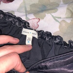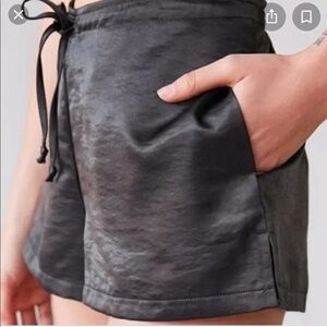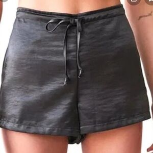 Silence + Noise UO Black Satin Tie Waist Shorts with Pockets Size Medium