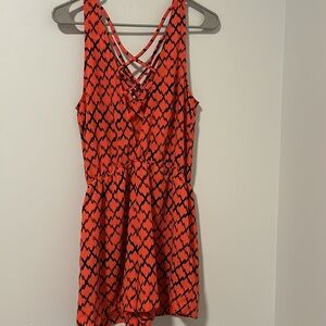 Silence + Noise Urban Outfitters Orange and Black Summer Boho Romper Size M.