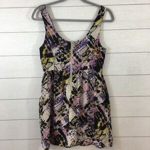 Water color printed silk dress with deep scoop neckline and rear zip entry. Side pockets!