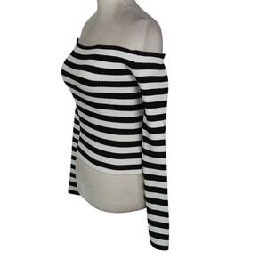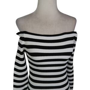 Silence + Noise Urban Outfitters White and Black Striped Off Shoulder Sweater S