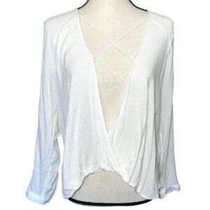 Silence + Noise White Wrap Blouse Womens M V-Neckline Long Sleeve Textured Rayon