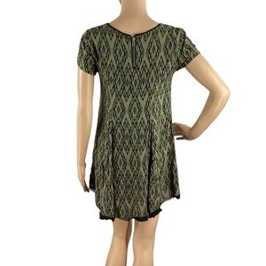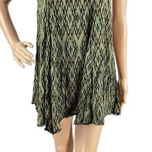 Silence + Noise Witchy Dress Green Black Print Rayon XS