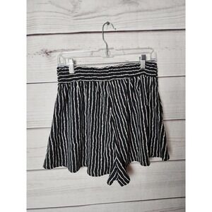 Silence+Noise Womens Paperbag Shorts Striped Elastic Waist Flowy Black White M