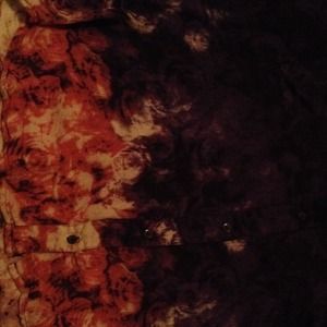 button up rosey pattern. button up collared t-shirt style. soft somewhat delicate material. has cut-outs on the shoulders.