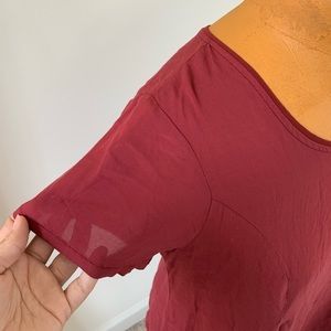 Gorgeous SUPER lightweight linen Tshirt dress in a gorgeous Merlot color! Lightly fringed edge on the bottom of the dress. Perfect with leggings or just a pair of boots