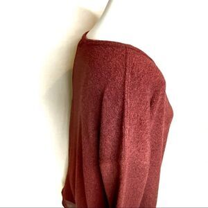 Silence + Noise burgundy Hannah long sleeve oversized sweater size M. Vented hem. Sheer chiffon trim. Soft, stretchy, and super comfortable. Urban Outfitters. Very good condition. 85% polyester 9% rayon 6% spandex. Length 30” front 32” back. Chest 26”