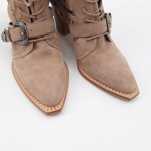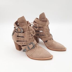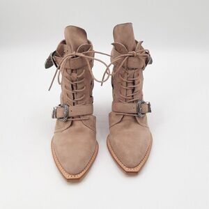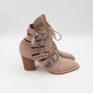 Silent D | Anthro La Festive Ankle Boot in Tan Suede - 41 / 10