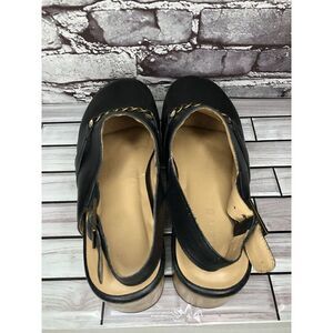 Elevate your shoe game with these stylish Silent D Georgia clogs! Made of premium black leather, these slingback clogs feature a wooden heel and a unique chain detail for added flair. Perfect for a casual day out, these shoes are comfortable and versatile, making them the perfect addition to any wardrobe. The Georgia clogs are a size 41 in European sizing, a US size 10.5, and a UK size 8. Don't miss out on these trendy and chic shoes that are sure to turn heads!