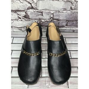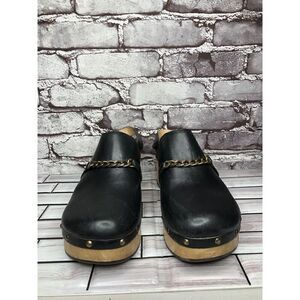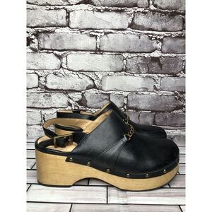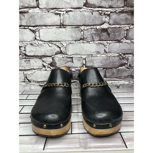 Silent D Georgia Clogs Mules Slingbacks Heeled Black Leather Wood Chain Women 41