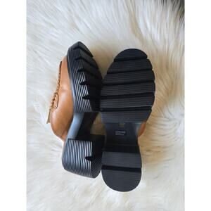 Features: Slip-on style, backless design, leather uppers, classic loafer construction, round toe, mocc seams, penny slot detail, platform lug sole, chunky block heel, lined footbed. Leather, Rubber.
