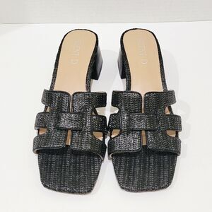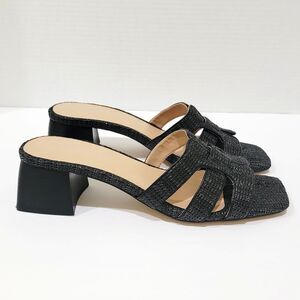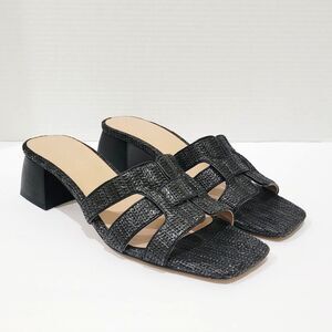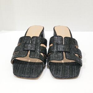 Silent D Piper Raffia Womens Sandals Size 41 US 9.5 10 Black Block Slide Heels