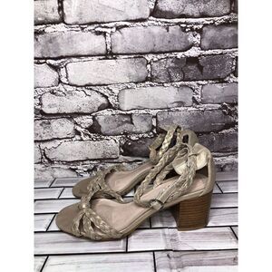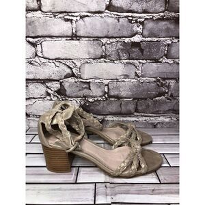 Silent D Raxiera Gold Braided Leather Block Heel Sandals Women’s Sz 38EU/7.5M US