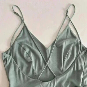 Silent + Noise Skort Romper. Urban Outfitters Adjustable straps. Gathered waist. Seamed bodice. Would be a great swimsuit coverup. Knit fabric. 64% Modal, 36% Polyester. Size Small. Color: Heather Mint Green. Slight imperfection at back waist shown in photo. Measurements laying flat: armpit to armpit 16”, waist 12”. Waist to hem 14.5”. Pet free smoke free environment FINAL MARKDOWN
