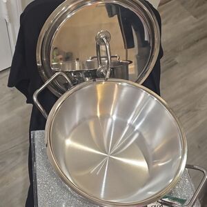 Durable stainless steel pot perfect for all your cooking needs. Features a sleek silver finish for a modern kitchen look.