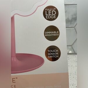 Brand new in box cloud shaped Pink LED Vanity Mirror. This mirror has a fully lit edge, touch sensor switch, dimmable brightness with an accessory stand . The mirror is battery operated.