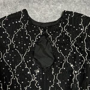 Silhouettes Dress Women's 20 ROARING 20s Sequins Beaded Flapper Girl Dress Black
