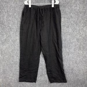 Silhouettes Pants Womens Size 1XA Black 100% Linen crop artsy lagenlook