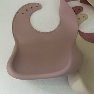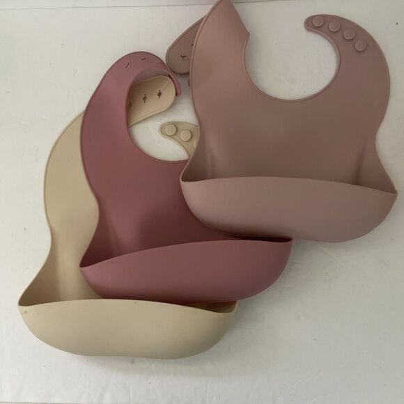 Silicone Baby Toddler Bibs Catch All Soft Qty 3 Unisex Leak Proof Mauves Beige