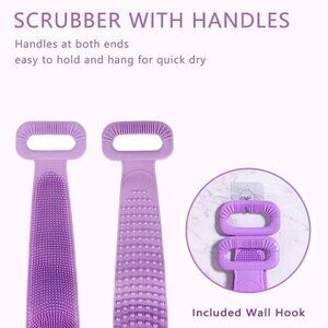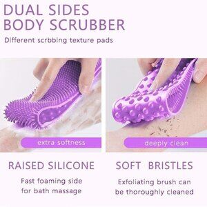 Silicone Back Scrubber For Shower Double Sided Bath Body 30" Purple