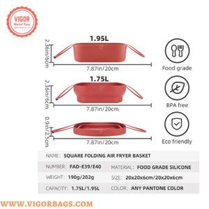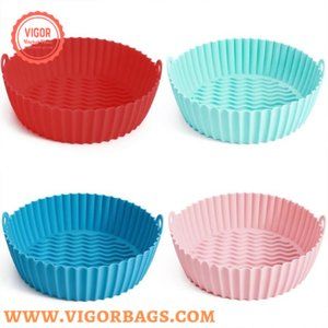Silicone Air fryer Liner is made of safe food-grade silicone. It's BPA-free, heat resistant up to 450 ℉, non-stick, non-toxic, odorless, reusable, and eco-friendly. Does not contain bisphenol A, a fluorescent agent that can be directly contacted with food. Microwave oven friendly.