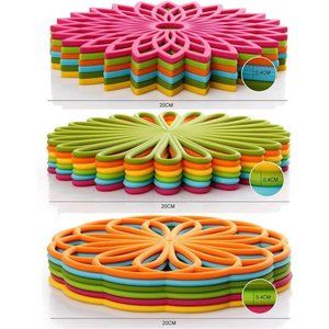 ๐งฟ๐ Multi-Purpose: The soft and flexible silicone trivets are versatile; Use it as a trivet to protect your kitchen surface from all scalding dishware. They are also suitable for kitchen mats, table mats, bowl mats, dish mats and pitcher coasters.