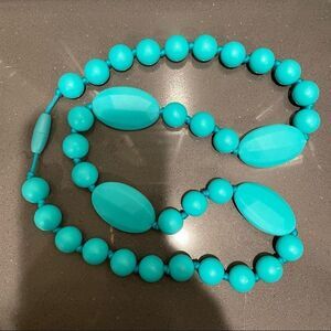 Silicone bead teething or anxiety toy chewy necklace in Aqua: Unchewed 😂