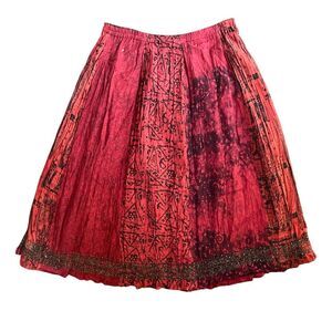 Silk A-Line Bohemian Maxi Skirt Size 12 Vibrant Reds Sequin Bead Trim