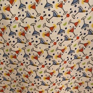 Alice + Olivia "Salome" open-neck blouse in novelty rainbow martini cocktail-print silk. Spread collar; button front. Long blouson sleeves; button cuffs. Relaxed silhouette. Silk. Size XS. One button on each sleeve has been swapped out (I lost one and wanted them to match!) no other visible signs of wear.