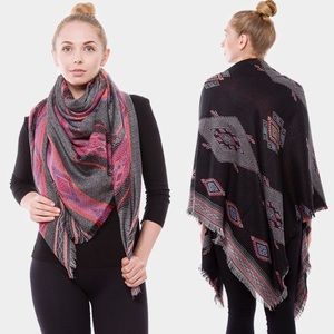 • Silk Feel Aztec Pattern Reversible Blanket Scarf