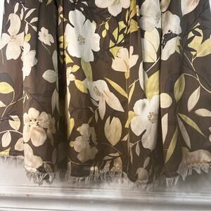 CD'This silk Banana Republic skirt features chic earth tones & cream color in a midi A-line silhouette, perfect for casual, going out, or work settings. The pleated design adds a touch of elegance, while the lightweight silk fabric ensures comfort, beautiful drape, and ease of movement. 1/2 fringe at bottom hem.