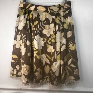 Silk Banana Republic Floral Earthtone A-Line Preppy Skirt, Size 2, Lined