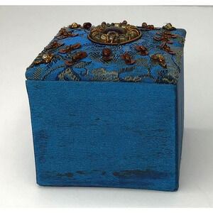 Silk Bead Embellished Blue Vintage Gift Box 2in by 2.5 inches