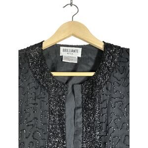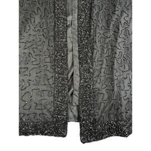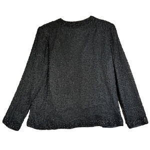 Silk Beaded Evening Jacket Women's Large Black Jet Beads Formal Cocktail Luxury