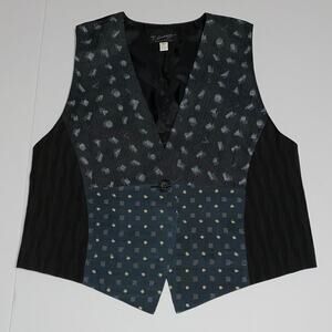 Silk Blend Kimono Vest Vintage Size Large Made in Korea Print Block Patchwork