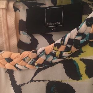 Butterflies bring contagious cheer as the new season gets underway, so you can't help but be in a good mood every time you slip on this Dolce Vita butterfly-print top. 100% silk. Flowy and breathable. Has an adorable braided collar. Great condition. Originally purchased from Neiman Marcus. Peach background.
