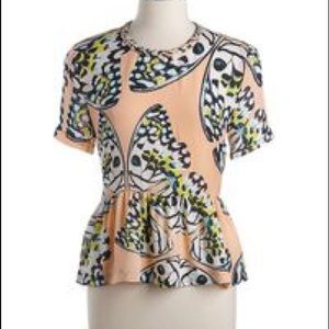 Silk Butterfly Print Peplum Top Dolce Vita