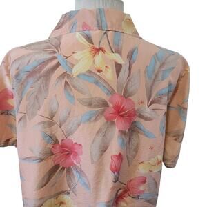 Vintage Linden Hill Silk Button Front Hawaiian Floral Hibiscus T Shirt Blouse Short Sleeve Collared Size 1X