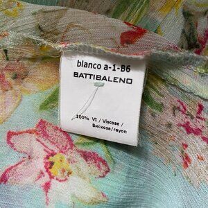 Silk Button-down Short Puff Sleeves Floral Blouse Aqua 6