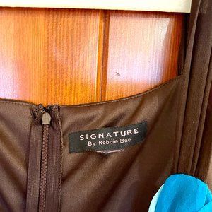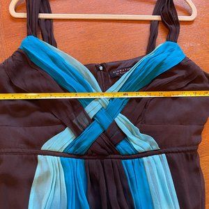 Silk Chiffon Maxi Dress blue & aqua, dk brown ~2x