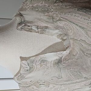 This is such a great blouse, Y2k, Crochet girl. Bell sleeves. silk chiffon. Size 12. pit to pit flat measurement is 23". Sleeves are 19" in great used condition and quality.