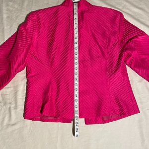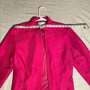 Pink, vibrantly striped Silk Club collection bomber jacket.